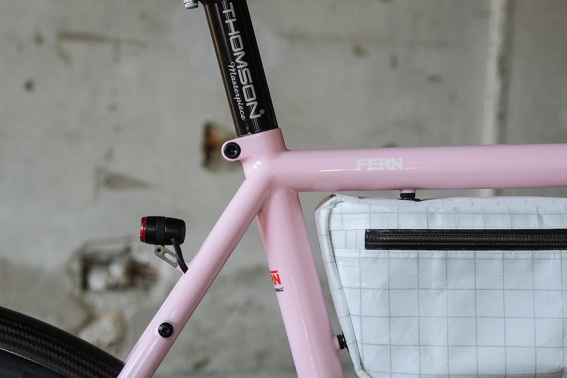 And here it is, his brand new Brevet machine, the Fern "OFF THE WALL". Daniel came up with the topic for this bike for obvious reasons and also the theme includes a part of our past and friendship when we were skating together back then at younger age. Tine of Gramm Tourpacking jumped on that train as well and she created these amazing square checkered pattern bags, reminding us all on our beloved old Vans Skateshoes we used to wear. We are super happy that Daniel recovered so well and now his new bike is ready roll out for the new Brevet riding season! Drive safe my friend and always remember that whenever you feel not good or hungry or tired on such long rides, just take it easy mate, have a break, have little nap, get your self a coffee and only continue if you feel good again. It's all about to get to finish at all and not about the time in what you'll make it! Happy riding Daniel and stay off all walls in the future.... ;)