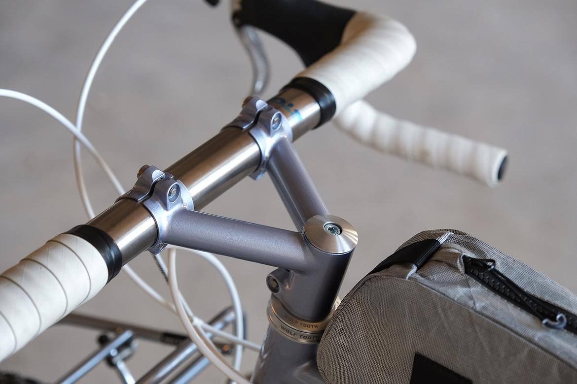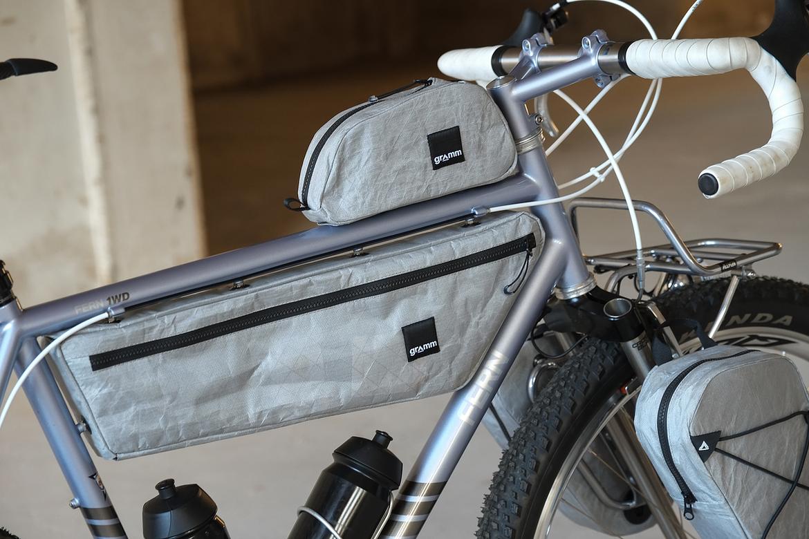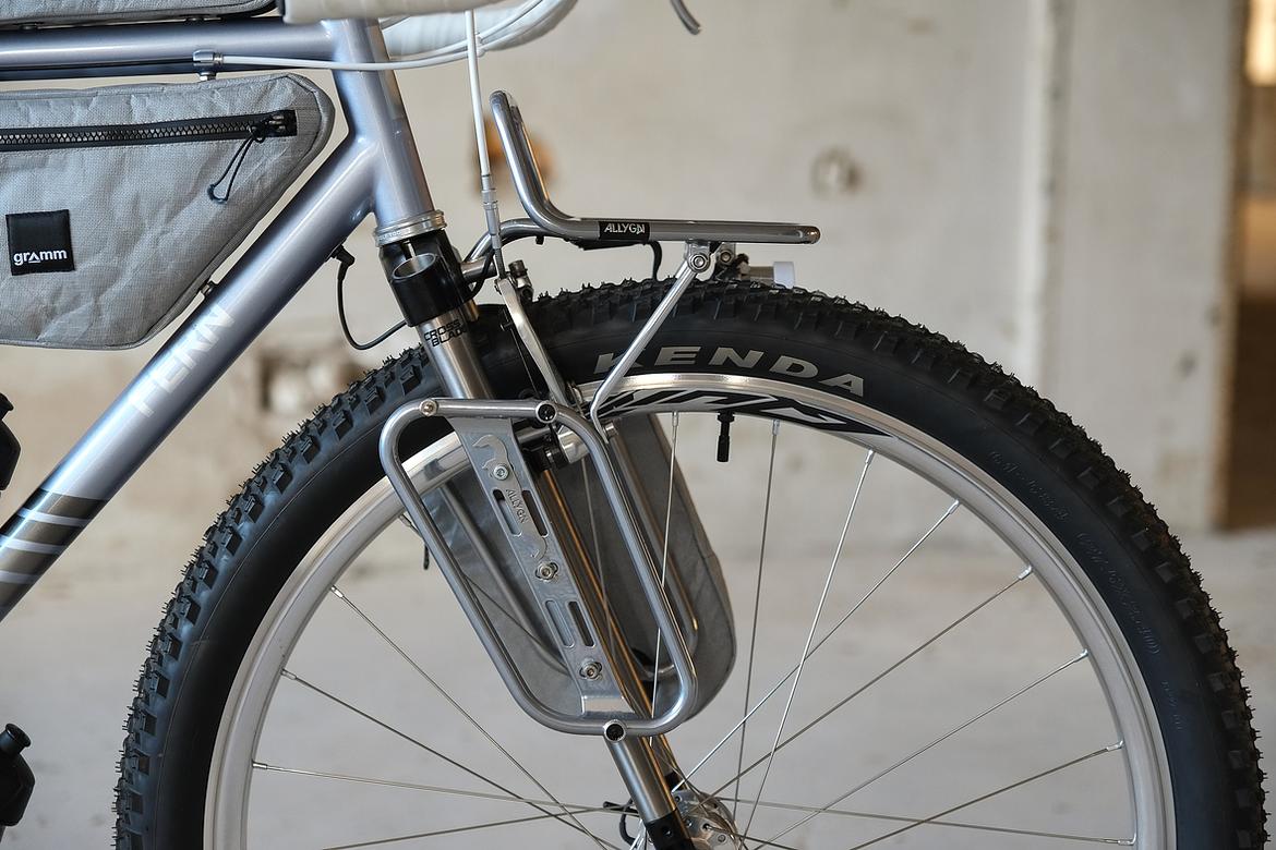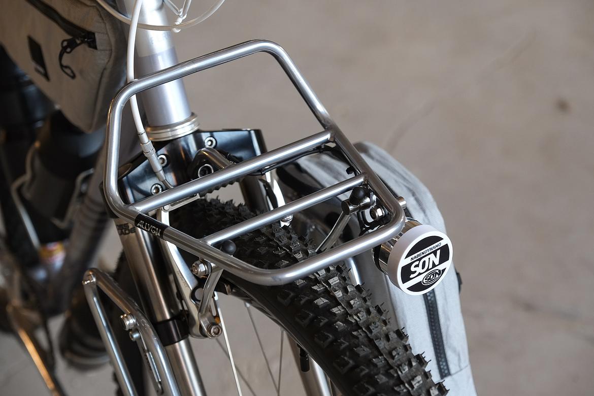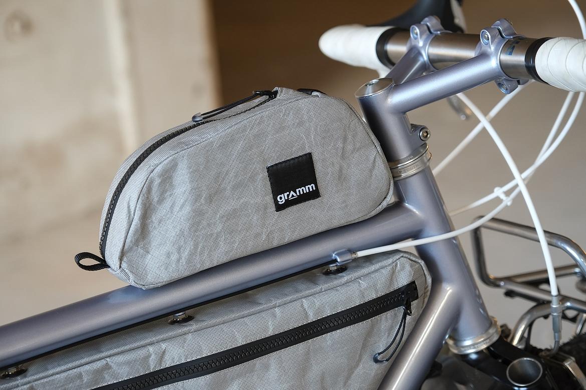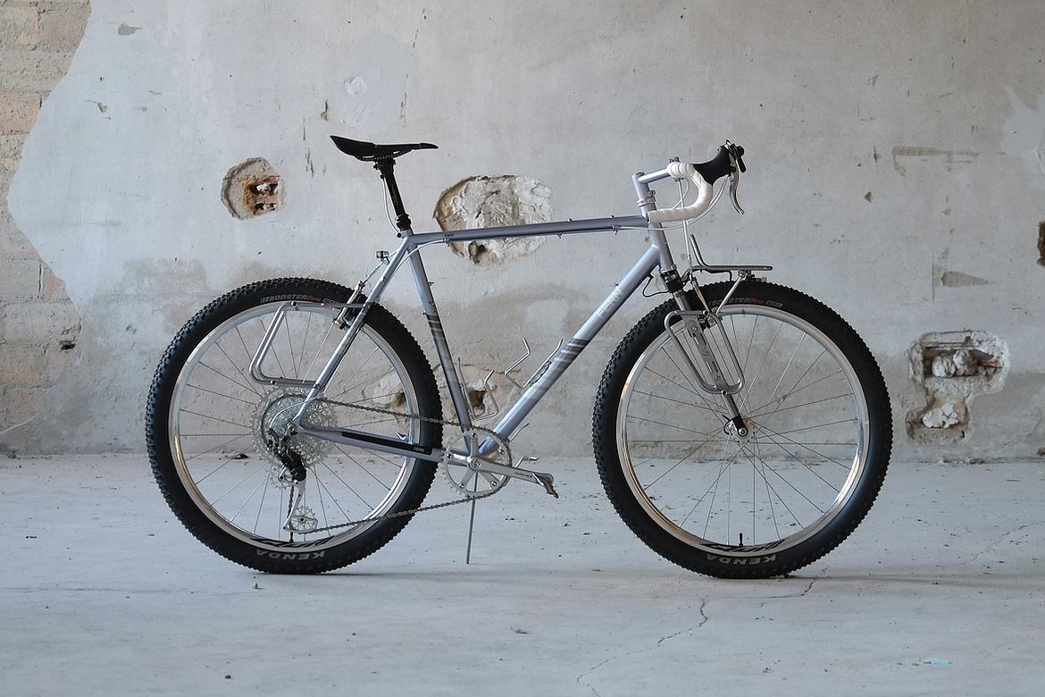 But the absolute icing on the cake of this bike is as usual and for sure the bags which are all created by my partner in all crimes, Tine of Gramm Tourpacking. They were all handmade here in Berlin from the absolute most exclusive Challenge Sailcloth materials and the silver color fabric just perfectly blends into this complete build.