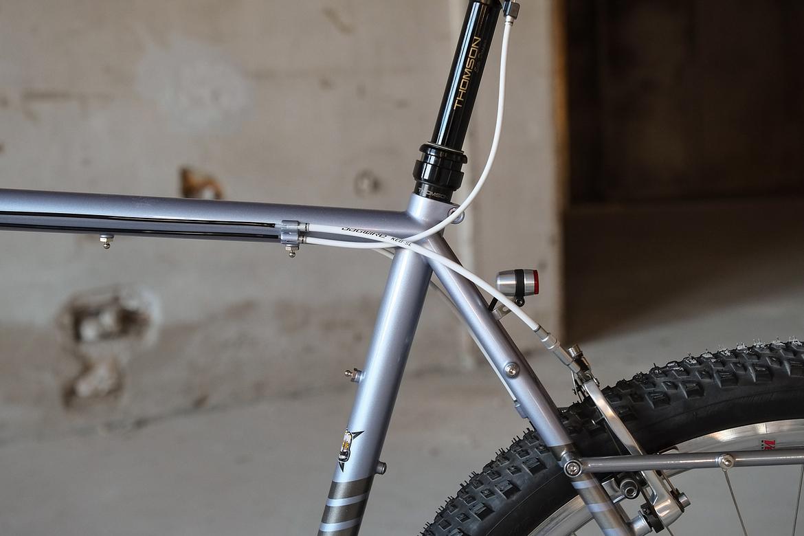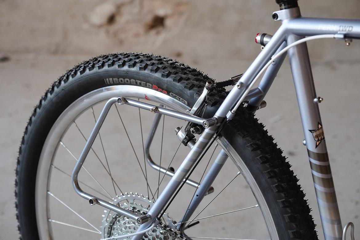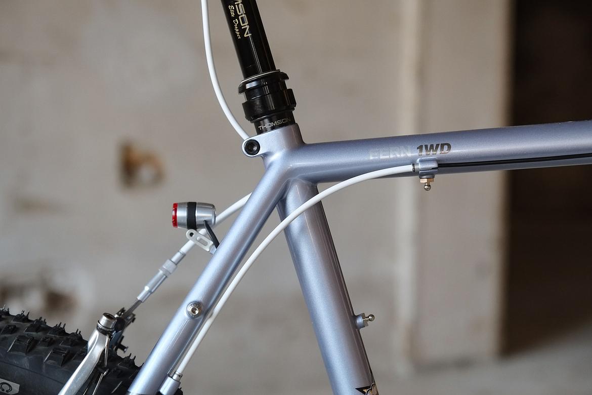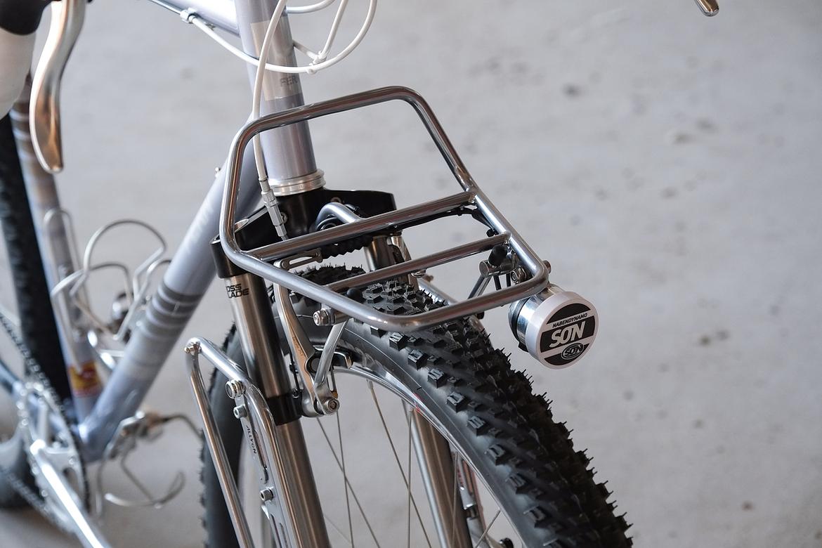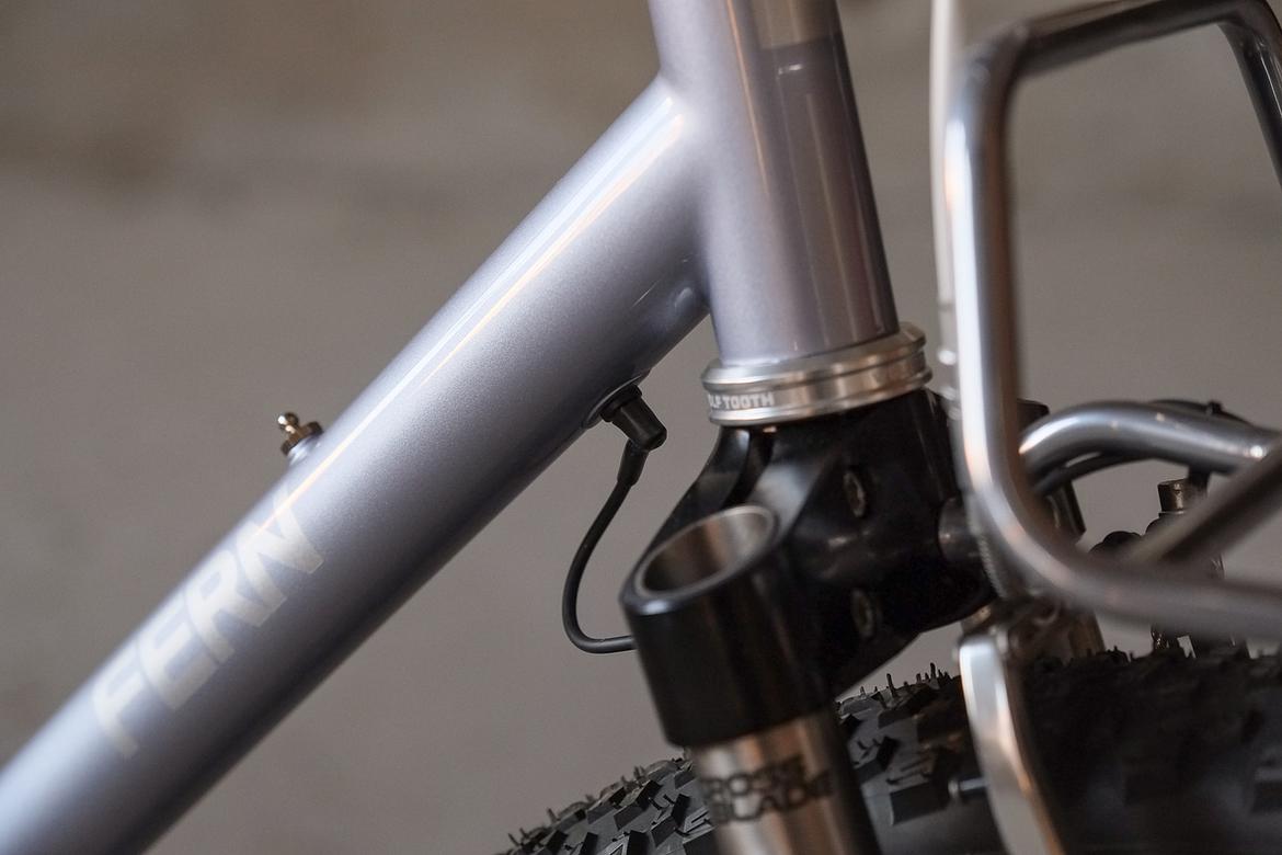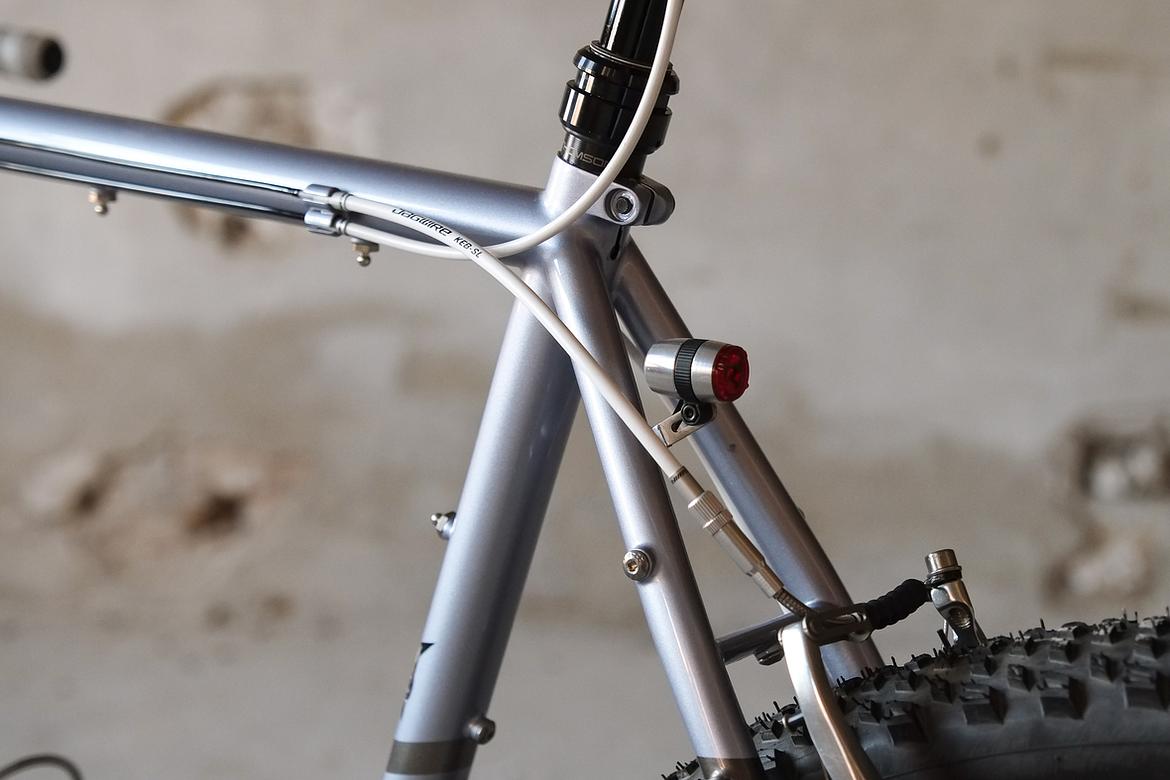 We stayed in touch and ping-ponged ideas back and forth over the big pond and more and more it crystalized how that custom Josh-Fern-Bike could actually look like.When finally Christian of Cyber Cycles offered that he could make an oldschool cantilver rim brake version of his infamous Tange Switchblade inspired Cyber Forks, it was clear that we gonna make a bike which blends an homage to the vintage MTB era back of the 80ties and 90ties with a today's modern Dropbar Gravel Touring bike. Since I really like to make theme bikes, I asked Josh after his personal favorites and other objects and designs he likes and it turns out that one of his most loved objects he owns is his 1988 Toyota Hilux Truck. I was immediately hooked by that topic and off we went to create a matching monster machine to his monster pickup truck! We wanted to use as many shiny silver components as possible and Josh did an amazing job sourcing those parts from all over the world. We had great support from friends companies such as Velocity, Ergon, Bitchn Bikes, Garbaruk, Wolftooth, SON, Tune, Gevenalle, Thomson, Busch und Müller, who all contributed their parts to this amazing machine. Thanks so much to all of you for your support on this project!