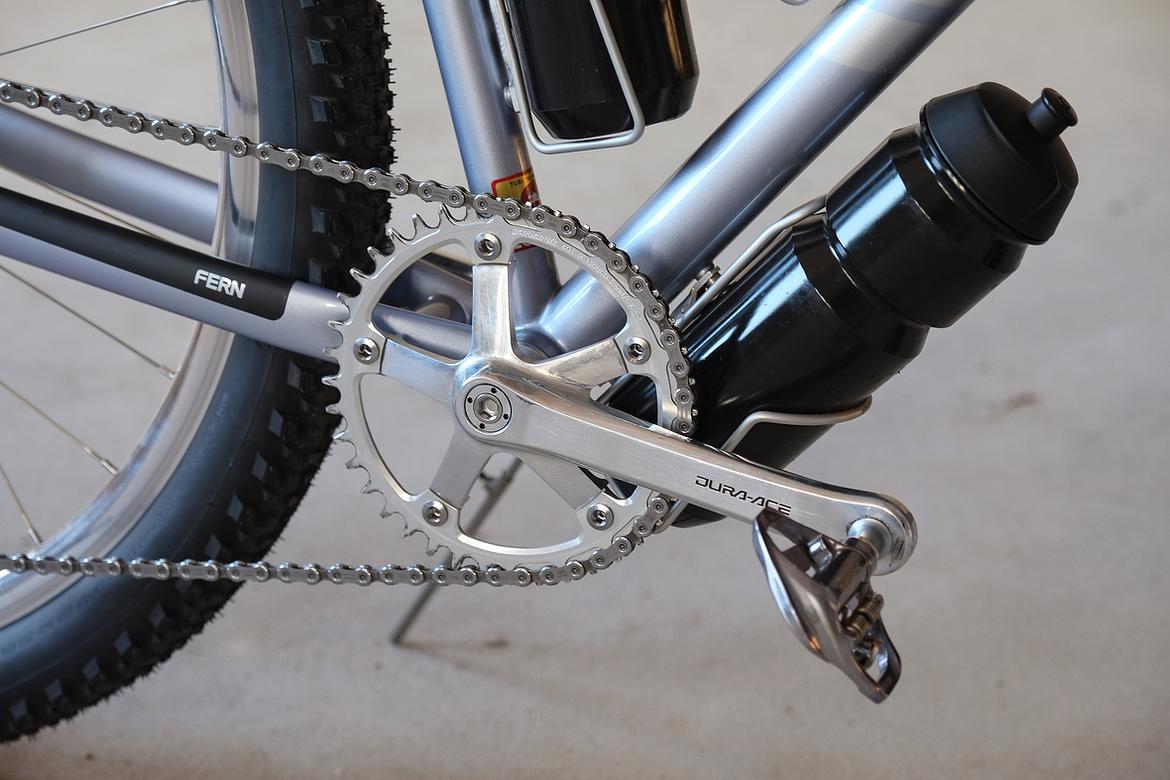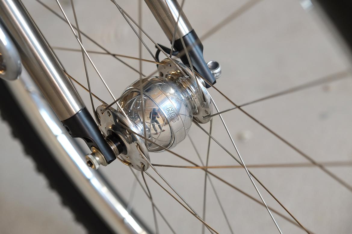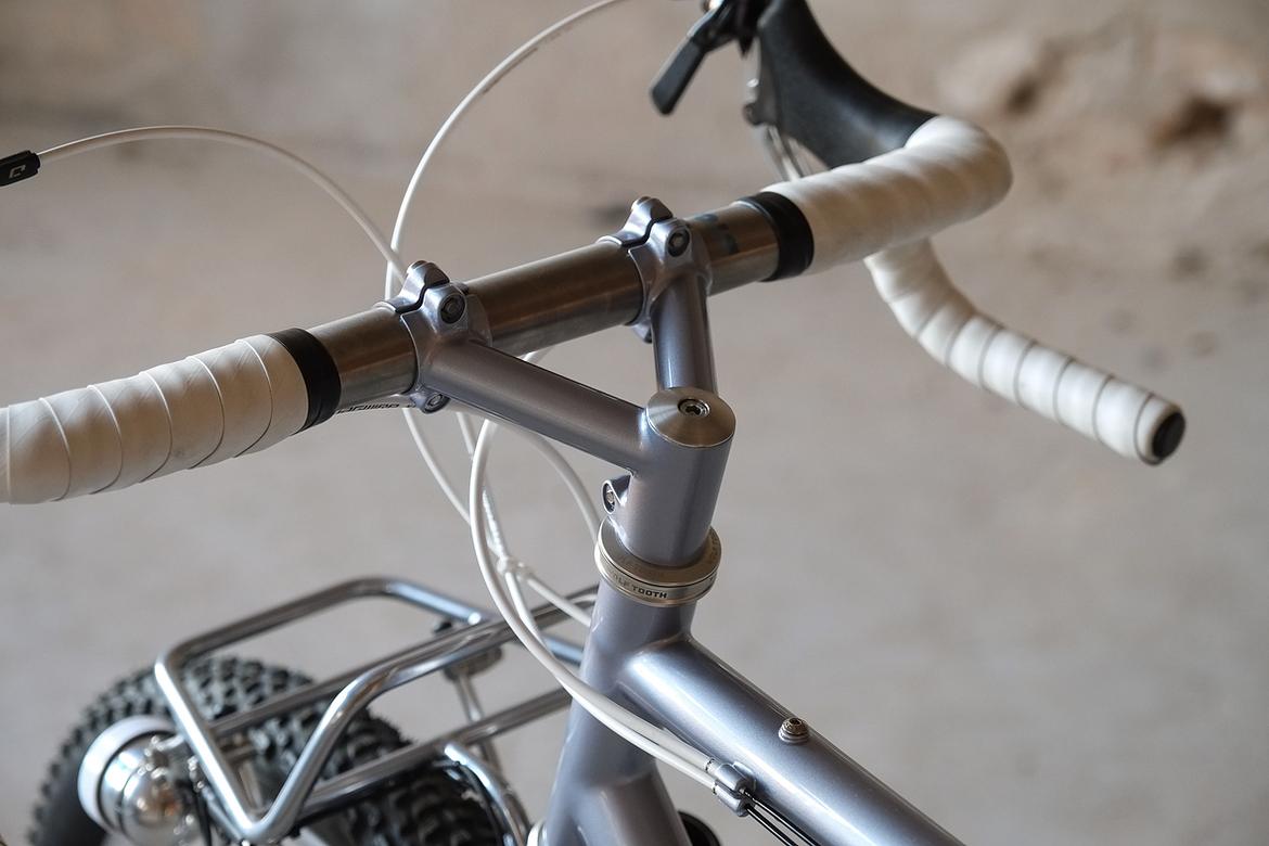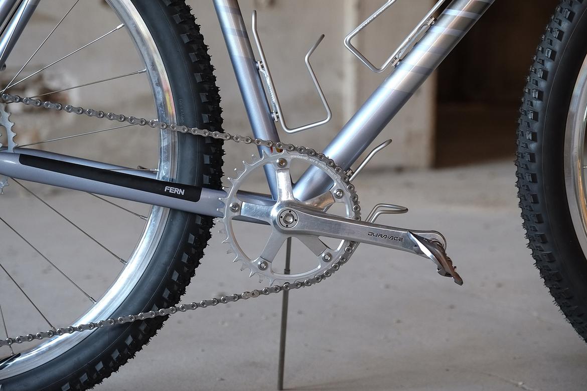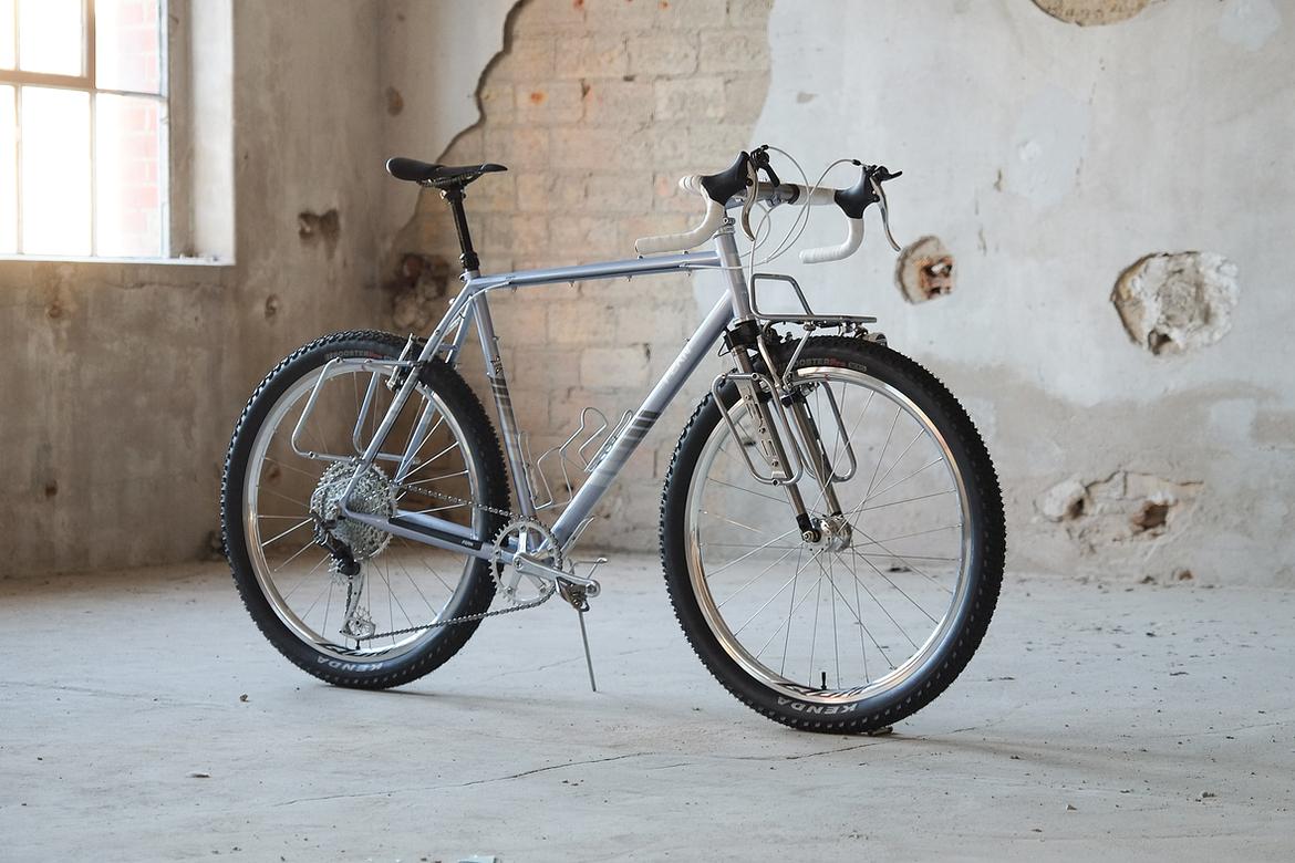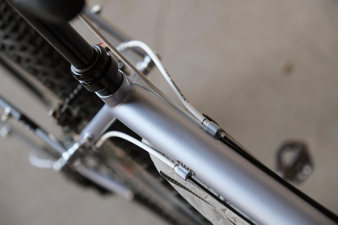 We stayed in touch and ping-ponged ideas back and forth over the big pond and more and more it crystalized how that custom Josh-Fern-Bike could actually look like.When finally Christian of Cyber Cycles offered that he could make an oldschool cantilver rim brake version of his infamous Tange Switchblade inspired Cyber Forks, it was clear that we gonna make a bike which blends an homage to the vintage MTB era back of the 80ties and 90ties with a today's modern Dropbar Gravel Touring bike. Since I really like to make theme bikes, I asked Josh after his personal favorites and other objects and designs he likes and it turns out that one of his most loved objects he owns is his 1988 Toyota Hilux Truck. I was immediately hooked by that topic and off we went to create a matching monster machine to his monster pickup truck! We wanted to use as many shiny silver components as possible and Josh did an amazing job sourcing those parts from all over the world. We had great support from friends companies such as Velocity, Ergon, Bitchn Bikes, Garbaruk, Wolftooth, SON, Tune, Gevenalle, Thomson, Busch und Müller, who all contributed their parts to this amazing machine. Thanks so much to all of you for your support on this project!